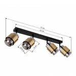O holofote preto fosco da série MILLEY feito de metal com vidro fumê e um anel de latão tem um tamanho de 650x100x125mm. A lâmpada requer 4 lâmpadas E27 com máx. 40W cada e uma voltagem de 230V. As lâmpadas não estão incluídas no escopo de entrega. Com este holofote, a luz direcionada pode ser definida e os acentos podem ser definidos em qualquer ambiente.